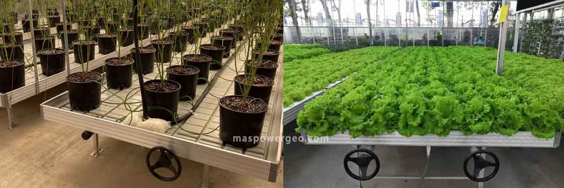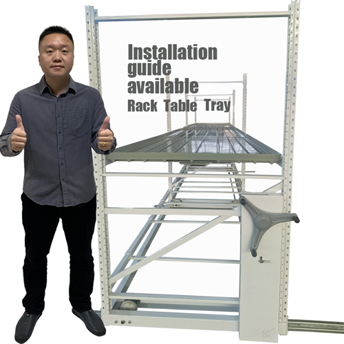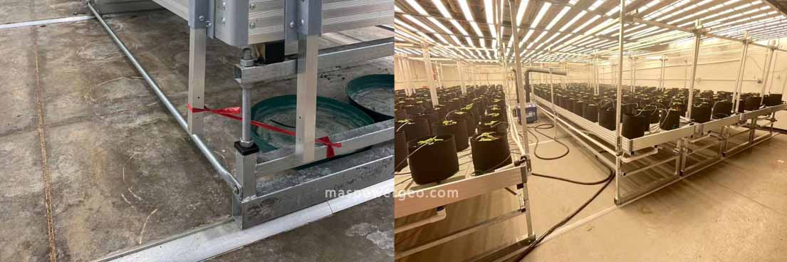 The key feather is that these are several tracks on the ground so that the rolling bench can move side to side freely and create excellent flexibility for your greenhouse or grow room.